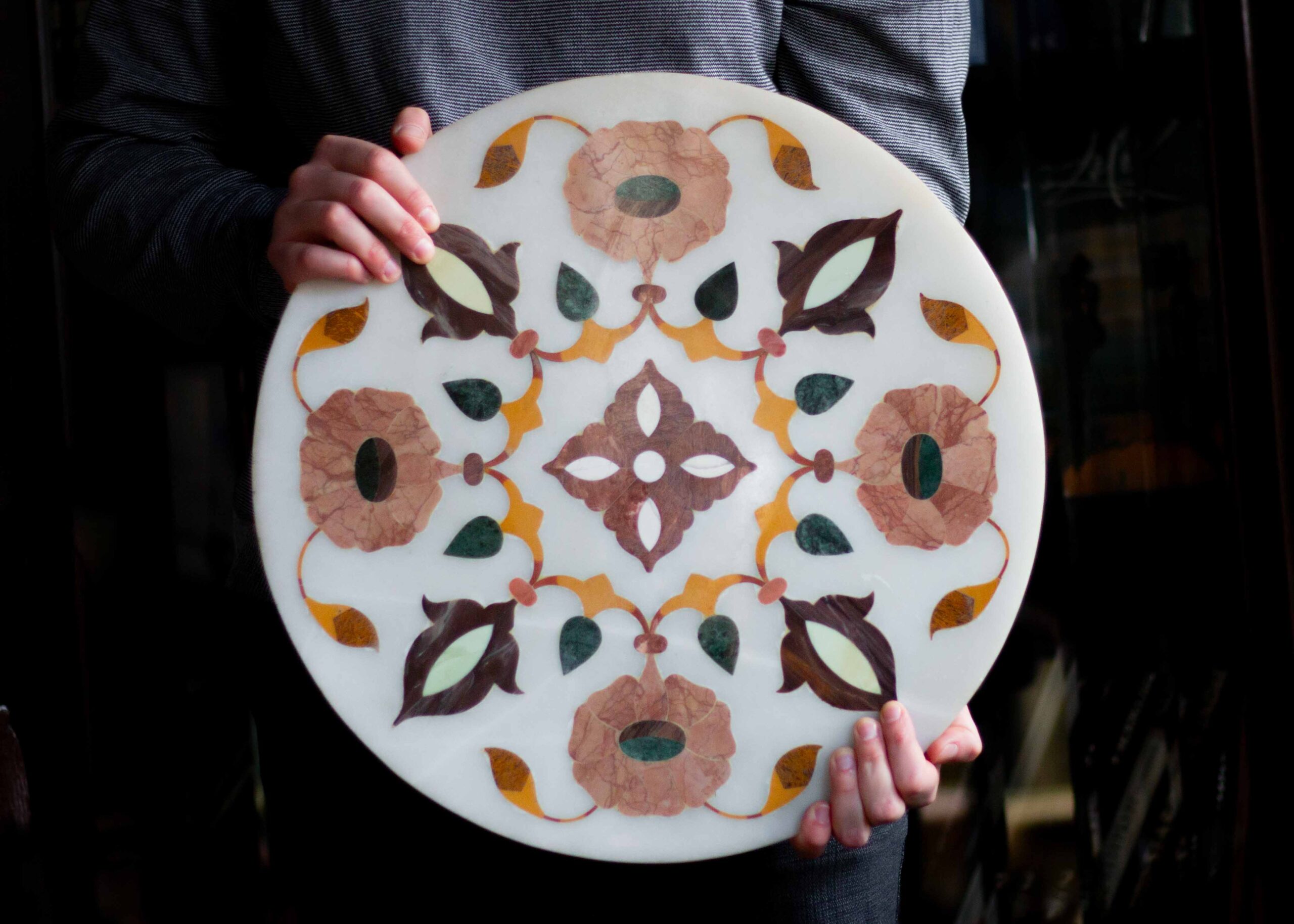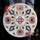 Round table top made of marble inlay.